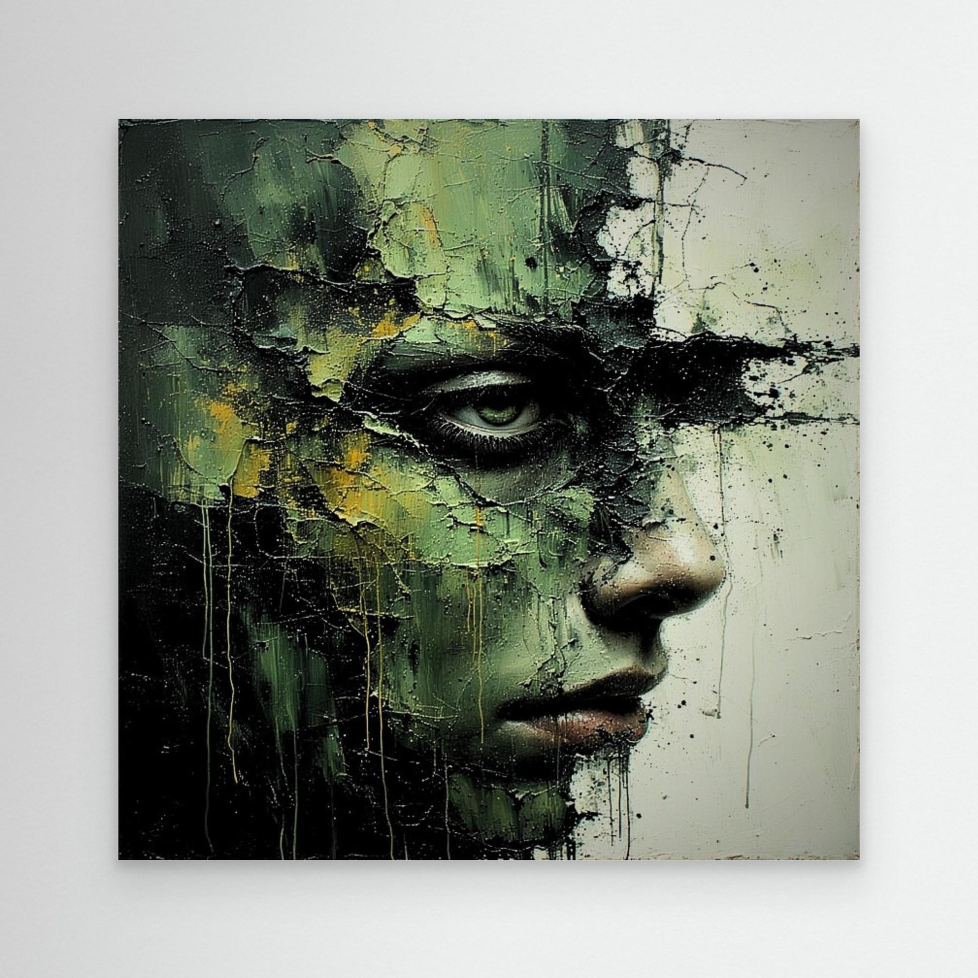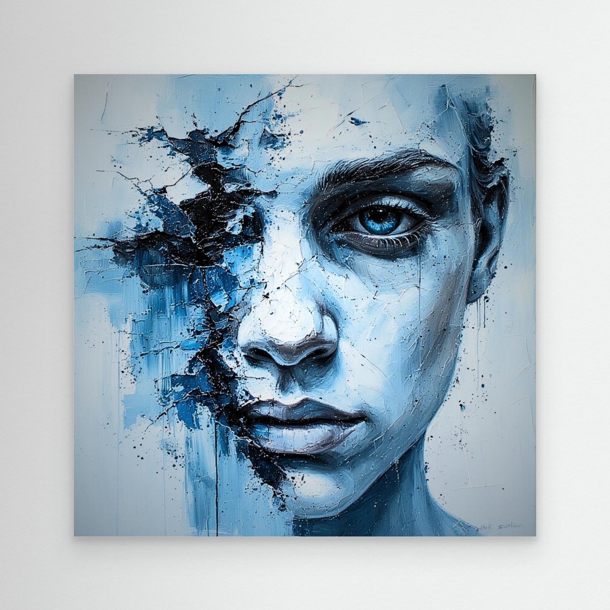 Rendered as stretched canvas with no frame, the pieces emphasize surface, depth, and material presence. Subtle variations in tone, fracture, and saturation allow the collection to shift with light and distance, rewarding both close viewing and spatial arrangement.